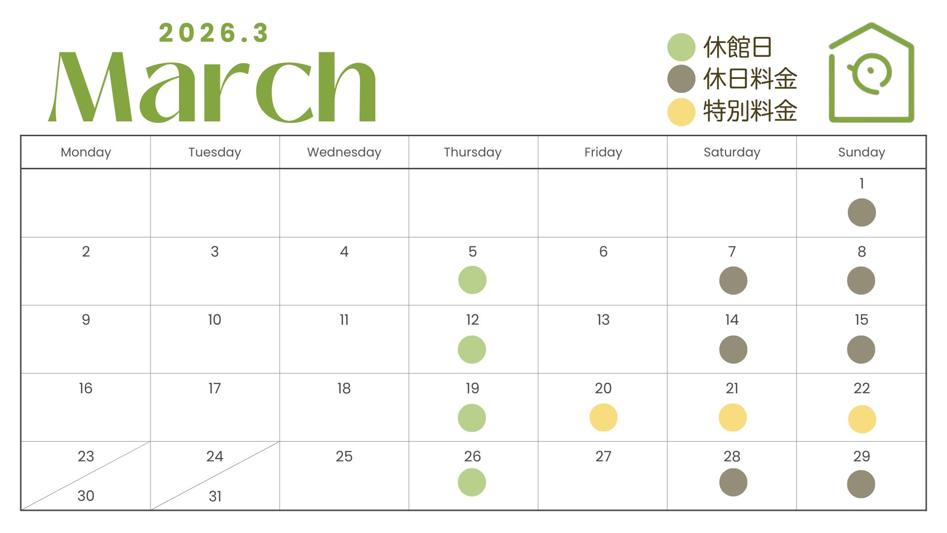3月の営業カレンダー | お知らせ | コトリの湯 | 信州松代の日帰り温泉施設