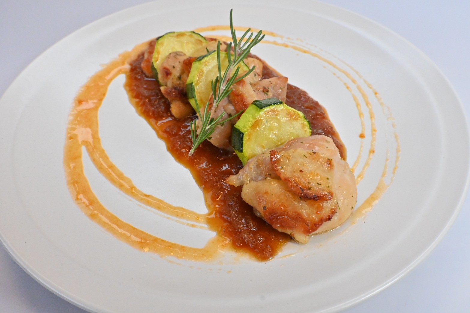 ハーブの豊かな香りとジューシーな鶏肉の旨味に、特製ソースがよく合います。